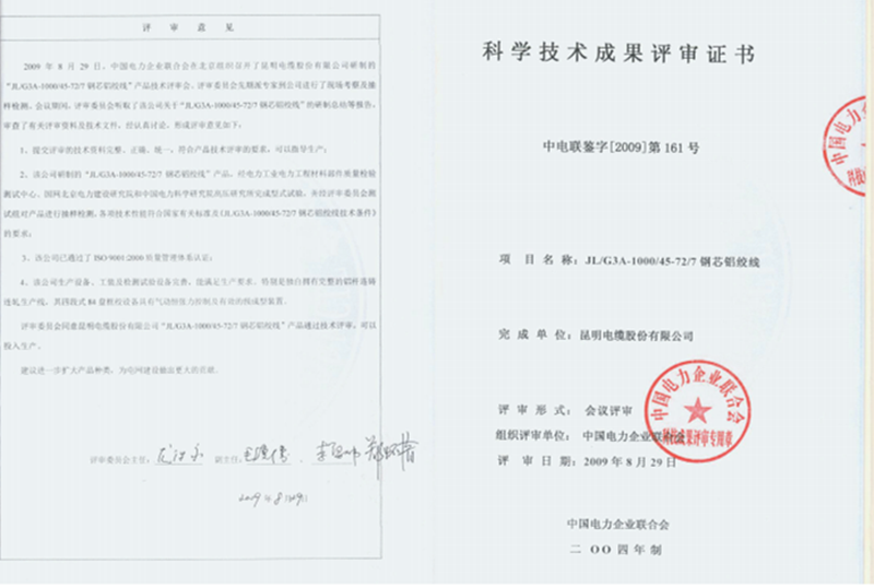 7、2008年8月首批研制成功國(guó)家電網(wǎng)錦屏一蘇南±800kv特高壓直流輸電工程用900mm2鋼芯鋁絞線。