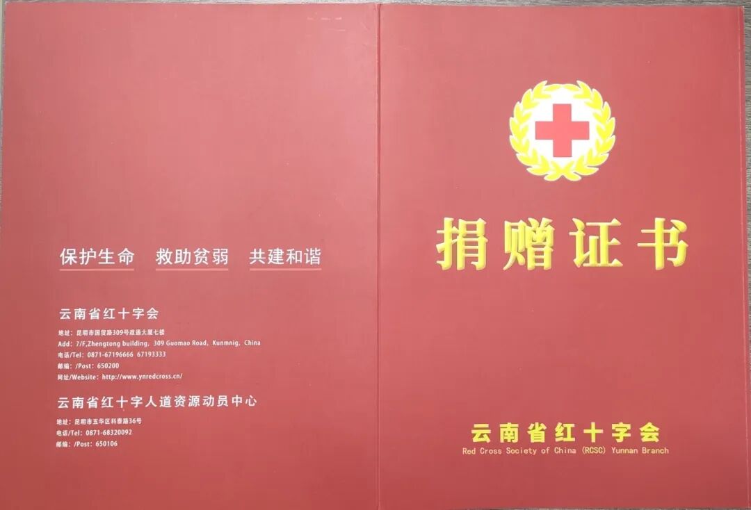 ·向云南省紅十字協(xié)會、昆明市紅十字會捐贈捐款